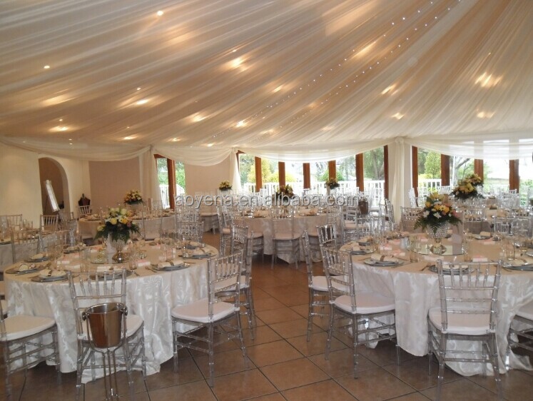 Arrangement efficace: Ils arrangent Chaises en résine claire Chiavari pour optimiser l'espace.